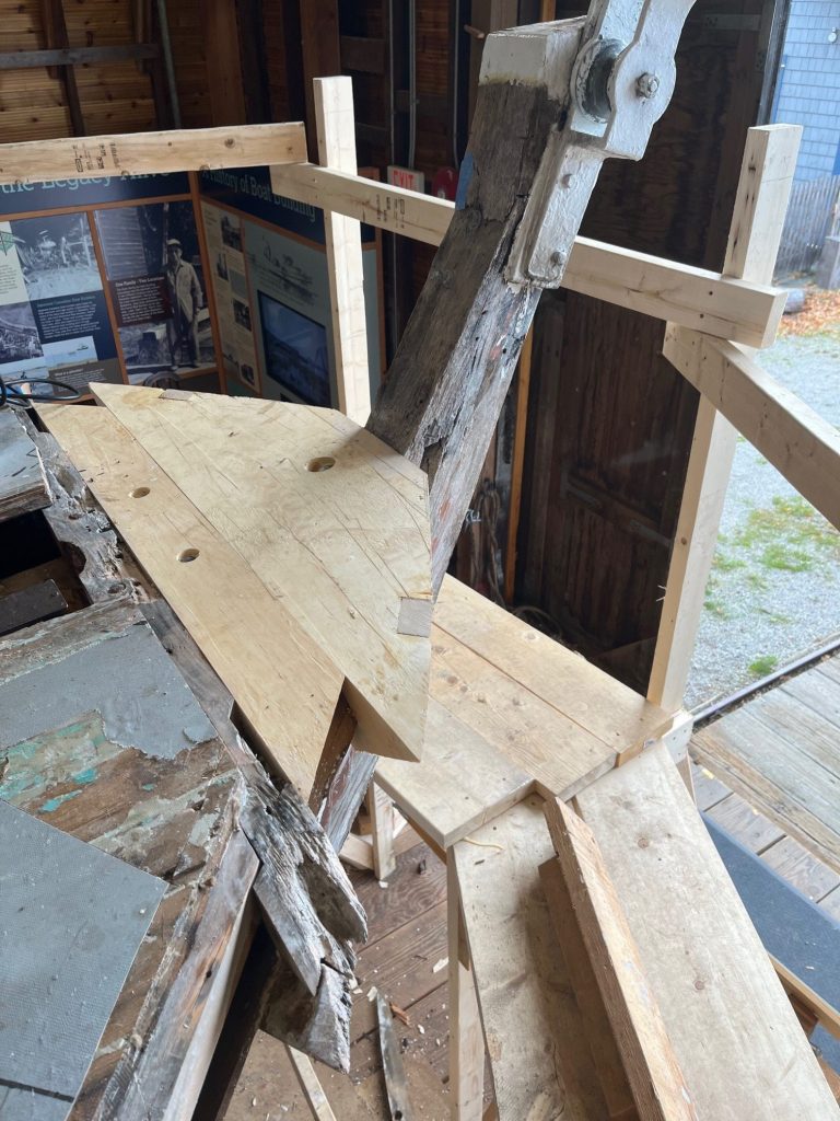 With the help of a shipwright assistant, the picket stern structure is now complete. For more details on this step of the restoration project, read here.